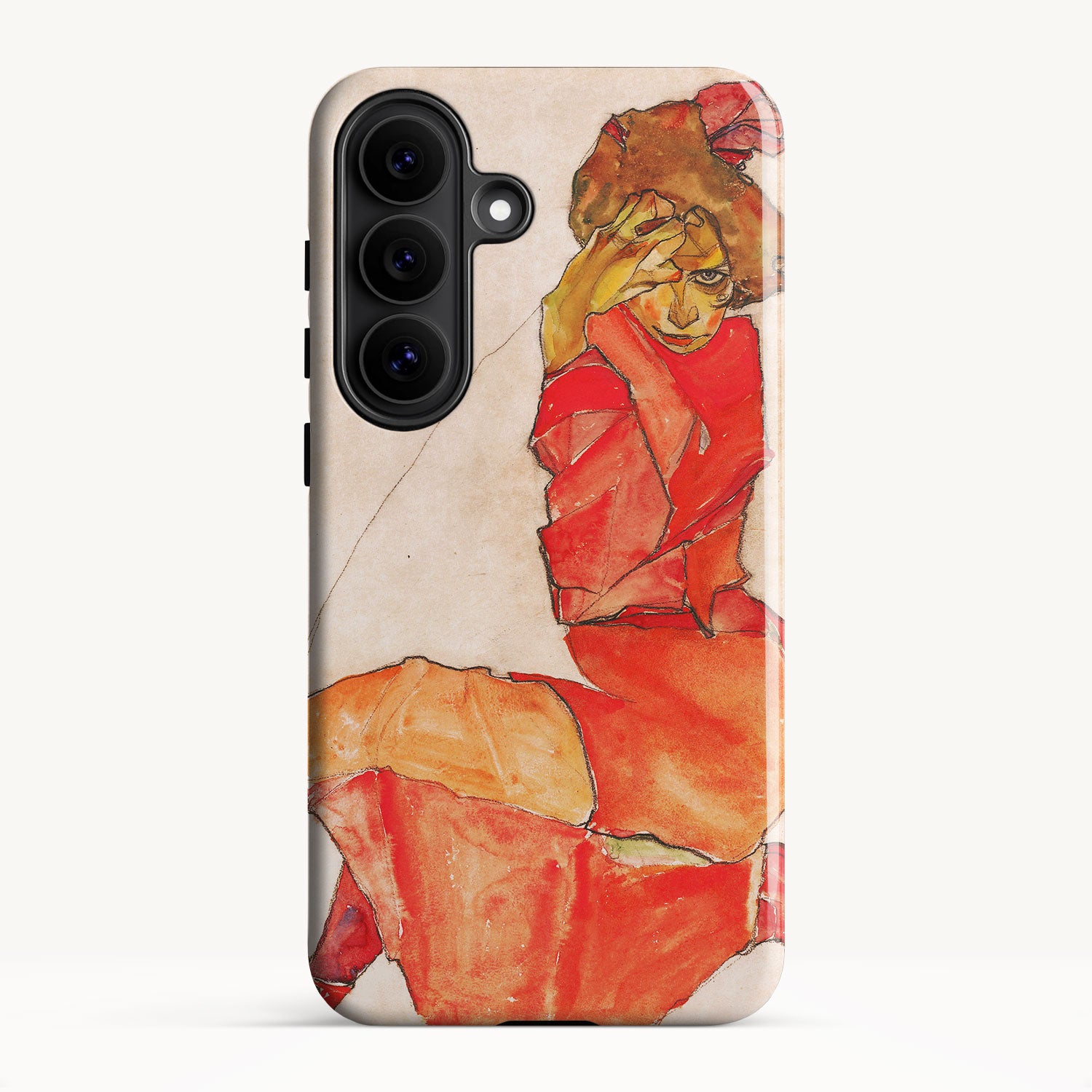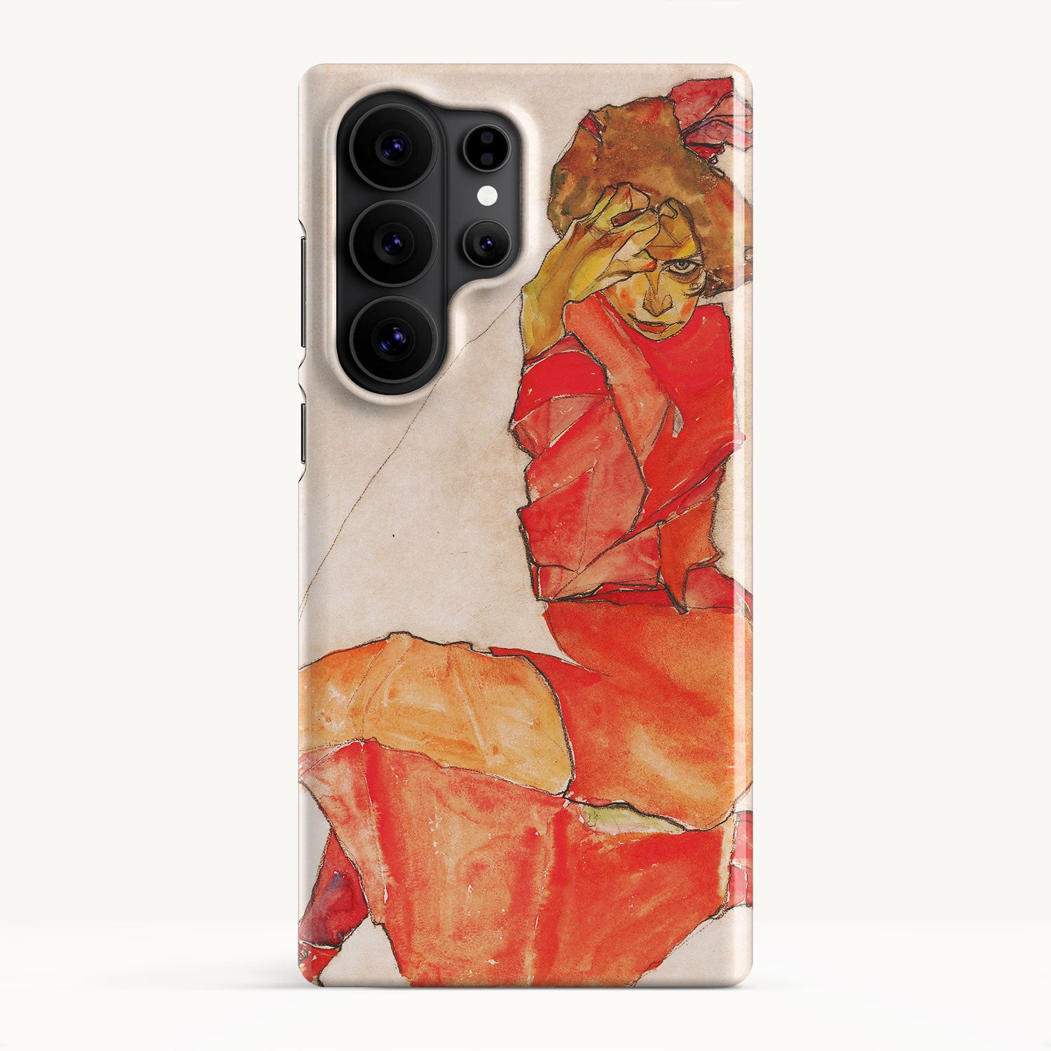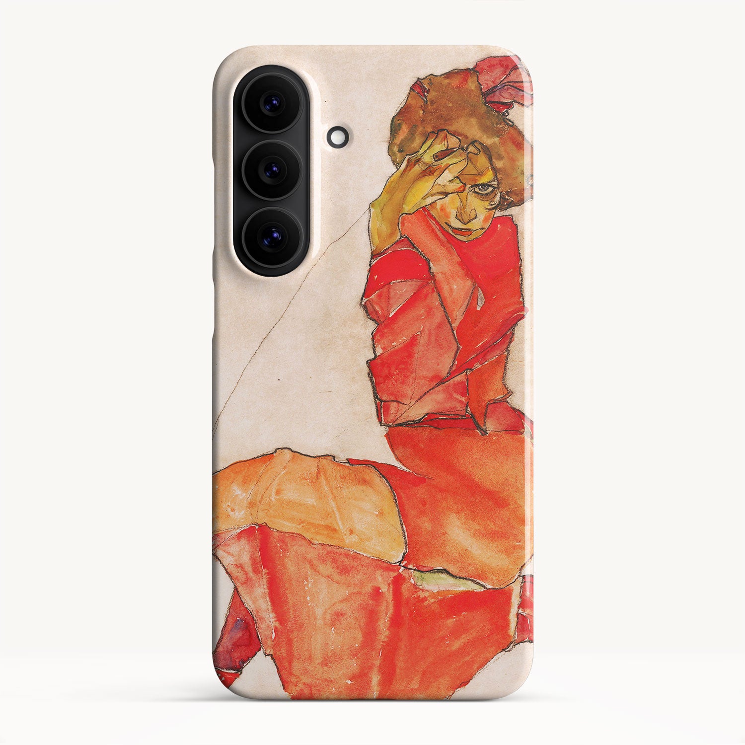 Kneeling Female in Orange-Red Dress by Egon Schiele