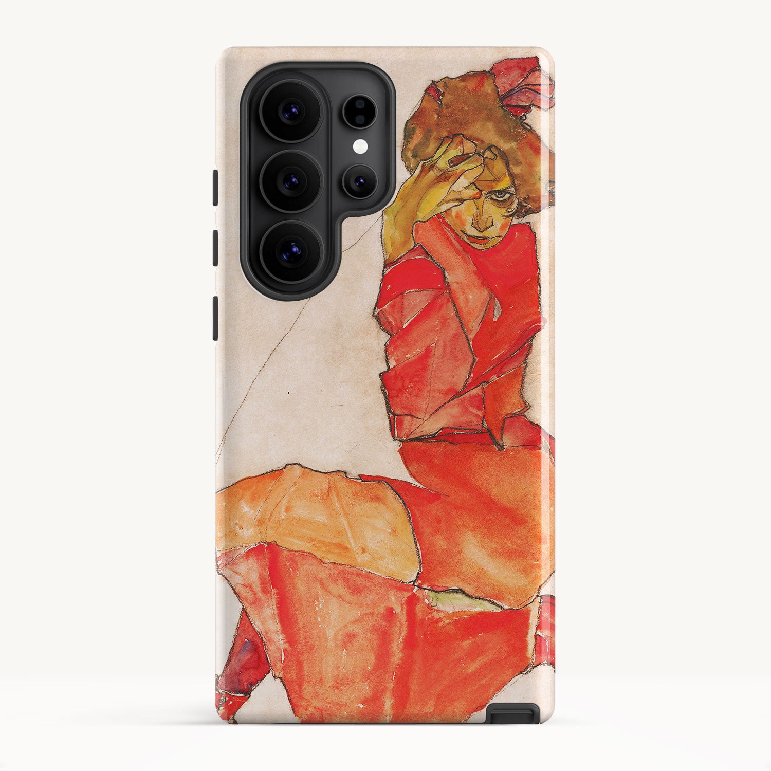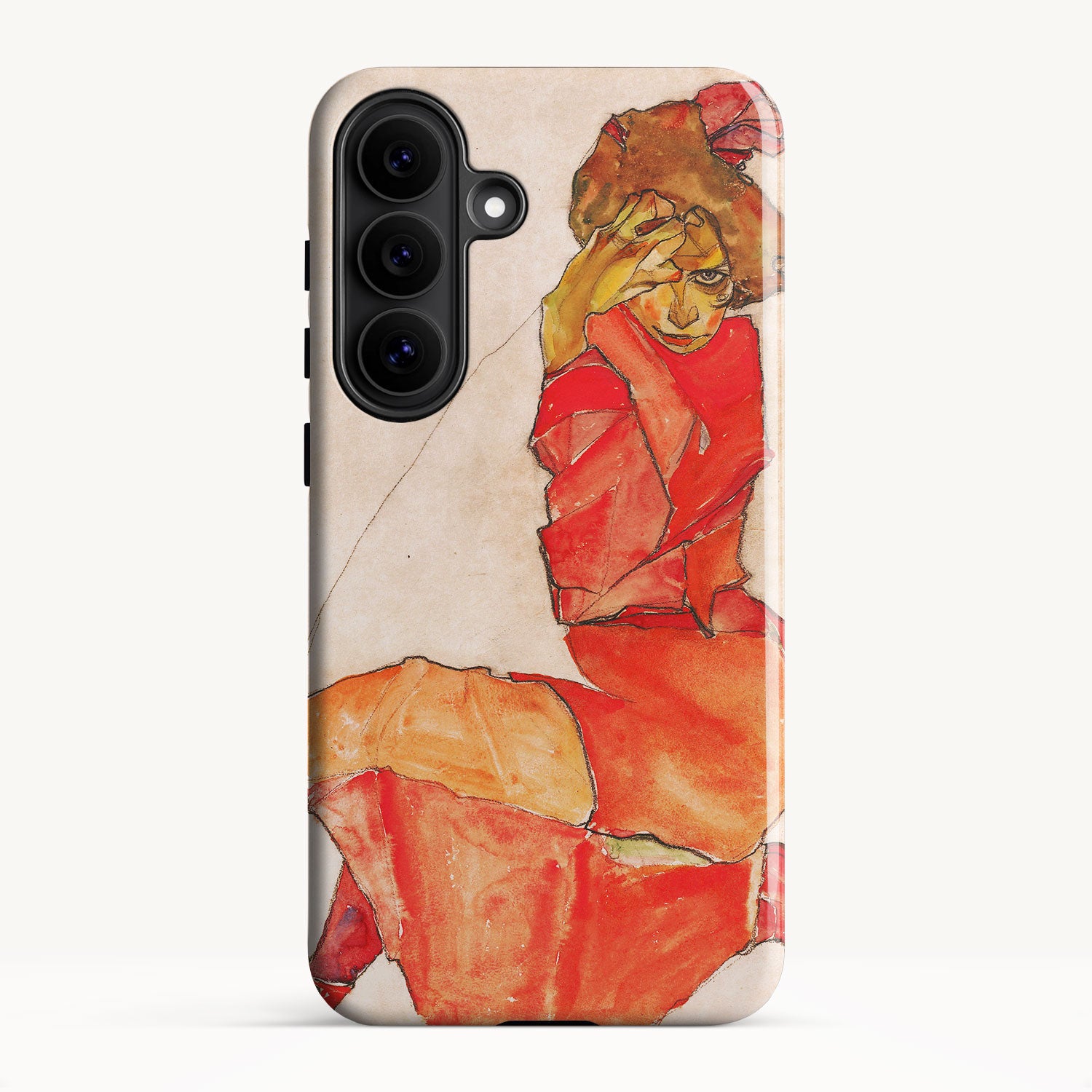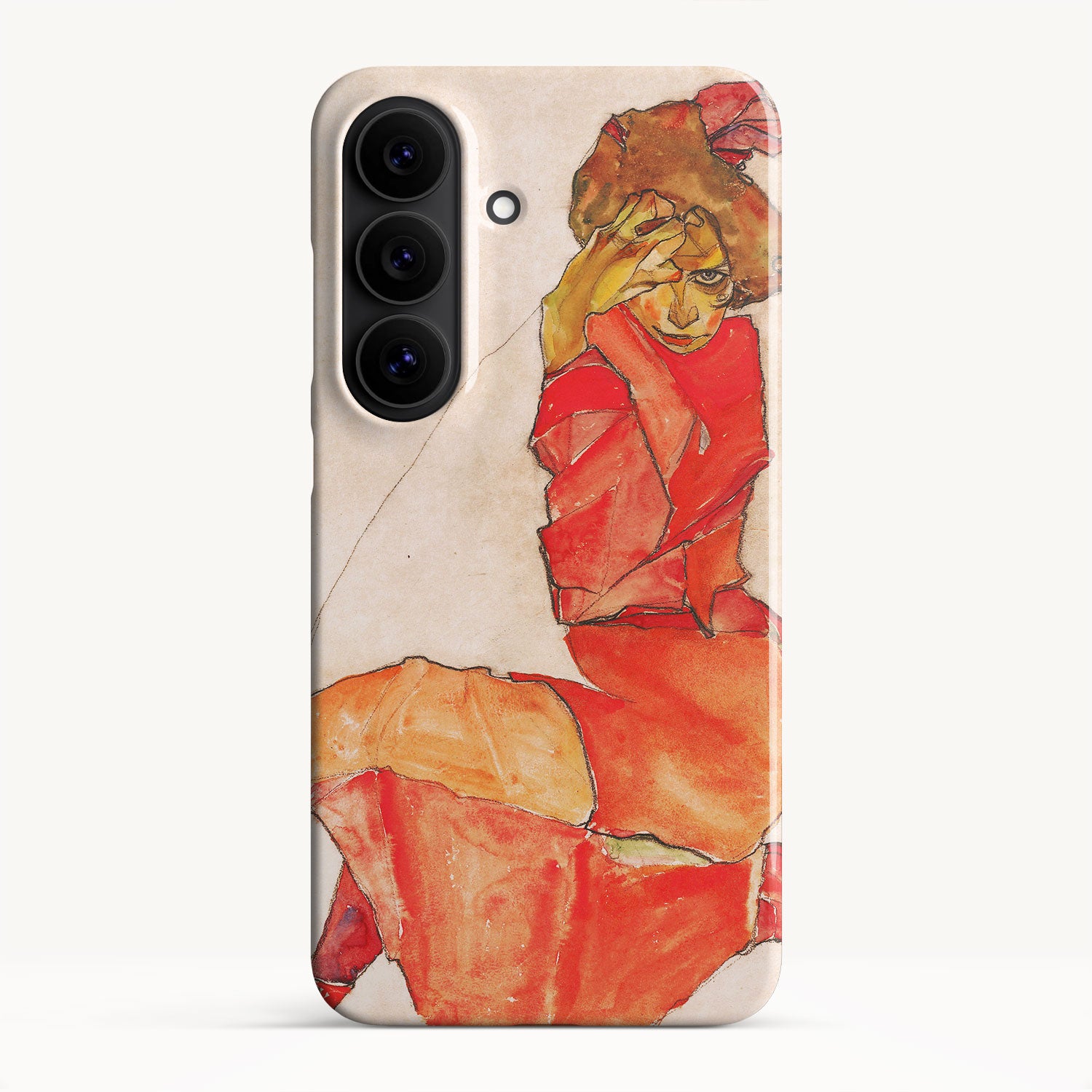 Kneeling Female in Orange-Red Dress by Egon Schiele
