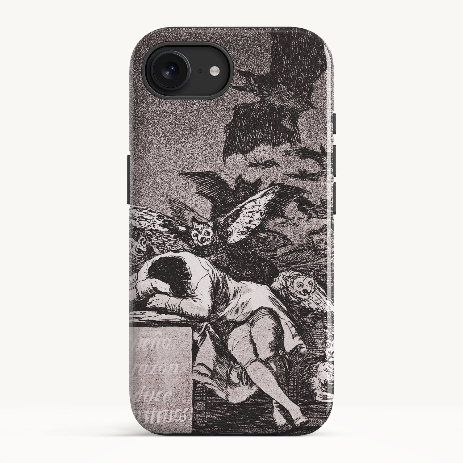 The etching depicts the Goya himself, slumbering at his desk while surrounded by eerie and grotesque creatures. Bats, owls, and nightmarish entities lurk in the shadows, symbolizing the irrational and fearsome aspects of the human psyche that emerge when reason is dormant.