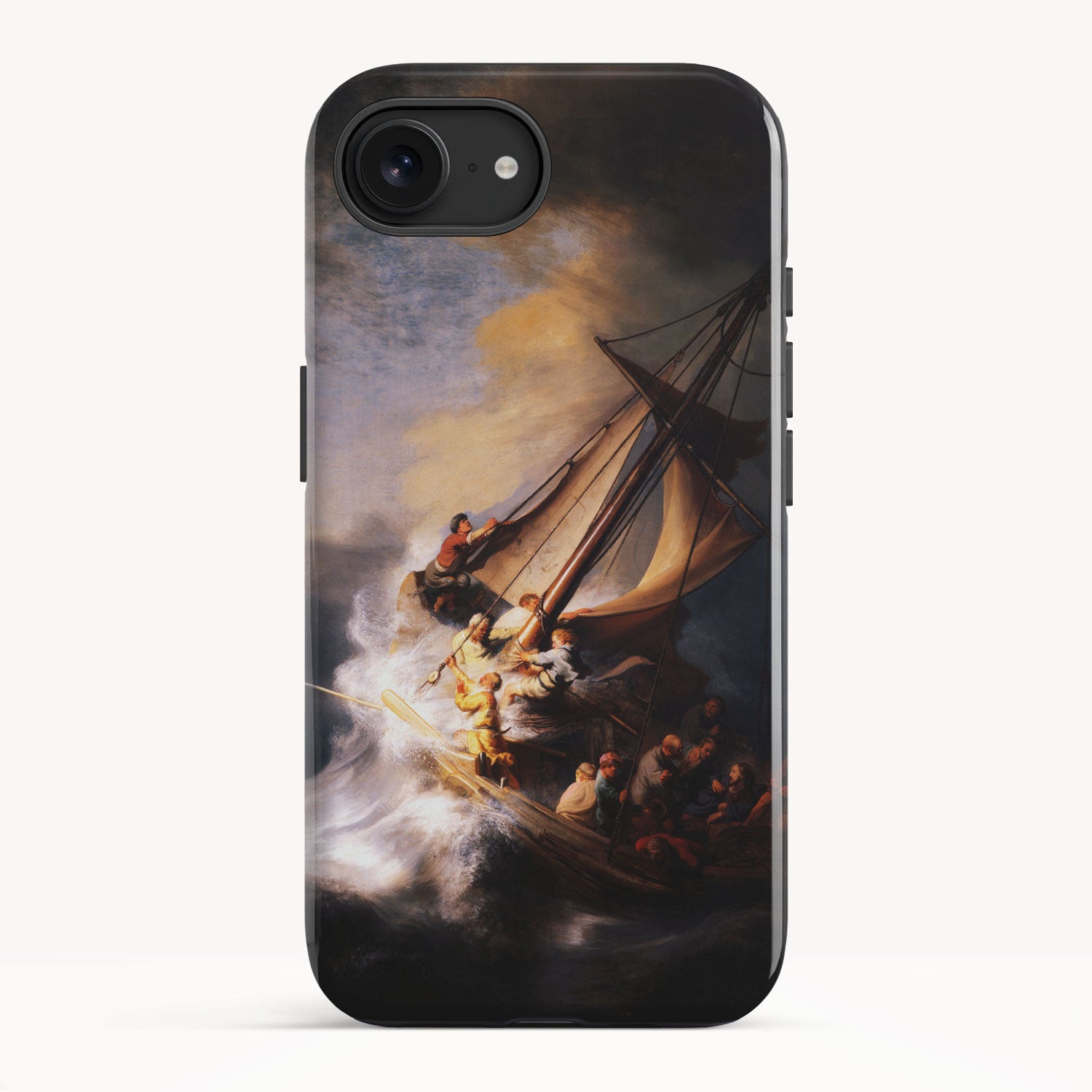 The painting shows a turbulent and chaotic moment on the Sea of Galilee as a violent storm rages, threatening the boat carrying Jesus and his disciples. Fear and anguish took hold upon disciples as they grapple with the violent waters. Jesus, however, remains the only calm and reassuring figure.